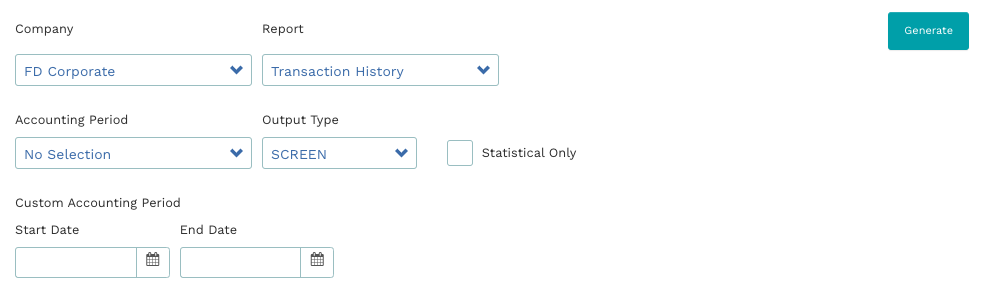 After the parameters for the relevant report have been set, click Generate. The report will be displayed in the selected output format.